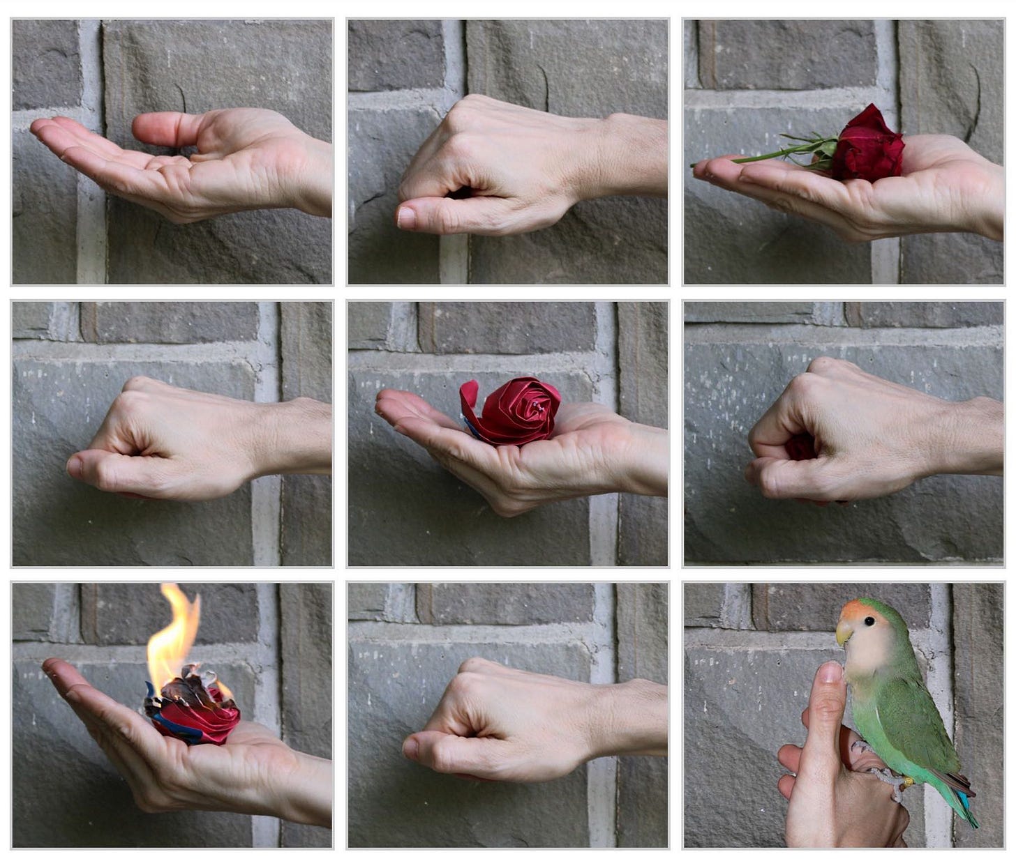 The idea is to capture, in still images, a magic trick: a real rose is turned into an origami rose; the rose is set on fire; the flaming rose becomes a bird (in this case, our late, beloved pet lovebird, Snark, whose name of course also graces the name of the press which publishes both Happenstance and Retcon5). I am reasonably pleased with how the image came out, with one potential issue, namely, that I am not sure the image is quite as legible as I had hoped: in the third panel what you are seeing is a real rose, but in the fifth it’s an origami rose. But I fear that my beloved family (whose members collaborated on its construction) did it too well, and it looks too much like the rose. It’s supposed to look a tad artificial! (I hope, of course, that i am wrong about this.) In the future, I will make sure to engage sufficiently incompetent origamists for any such project I might embark upon.